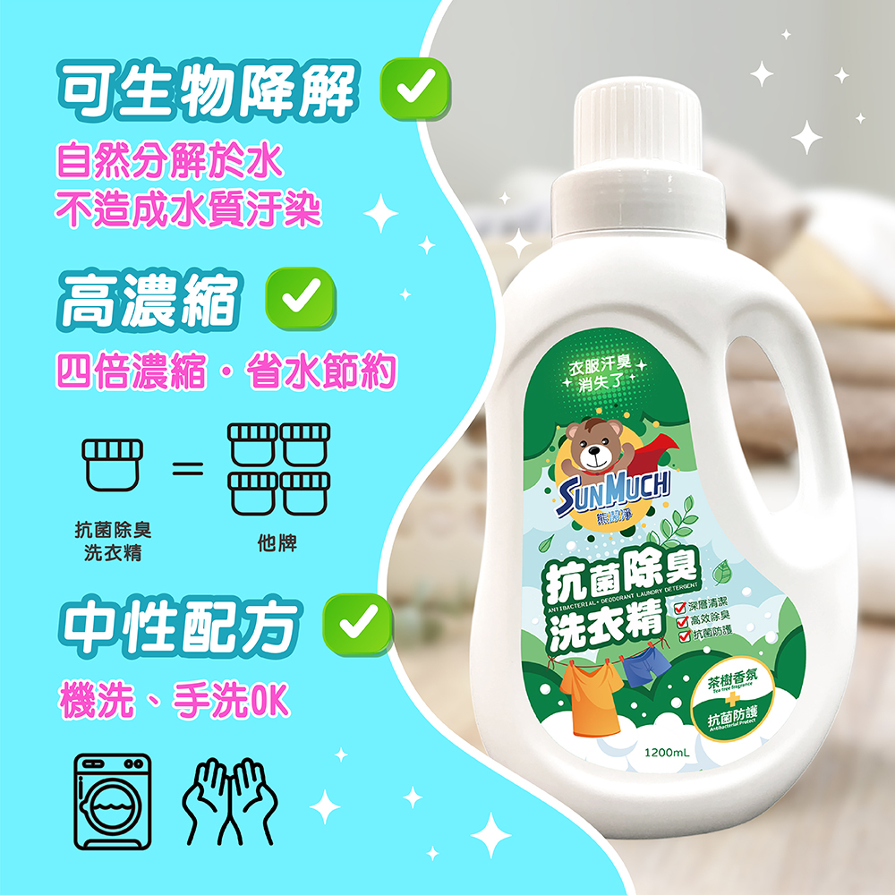 【SunMuch】熊潔淨 抗菌除臭濃縮洗衣精 1200ml