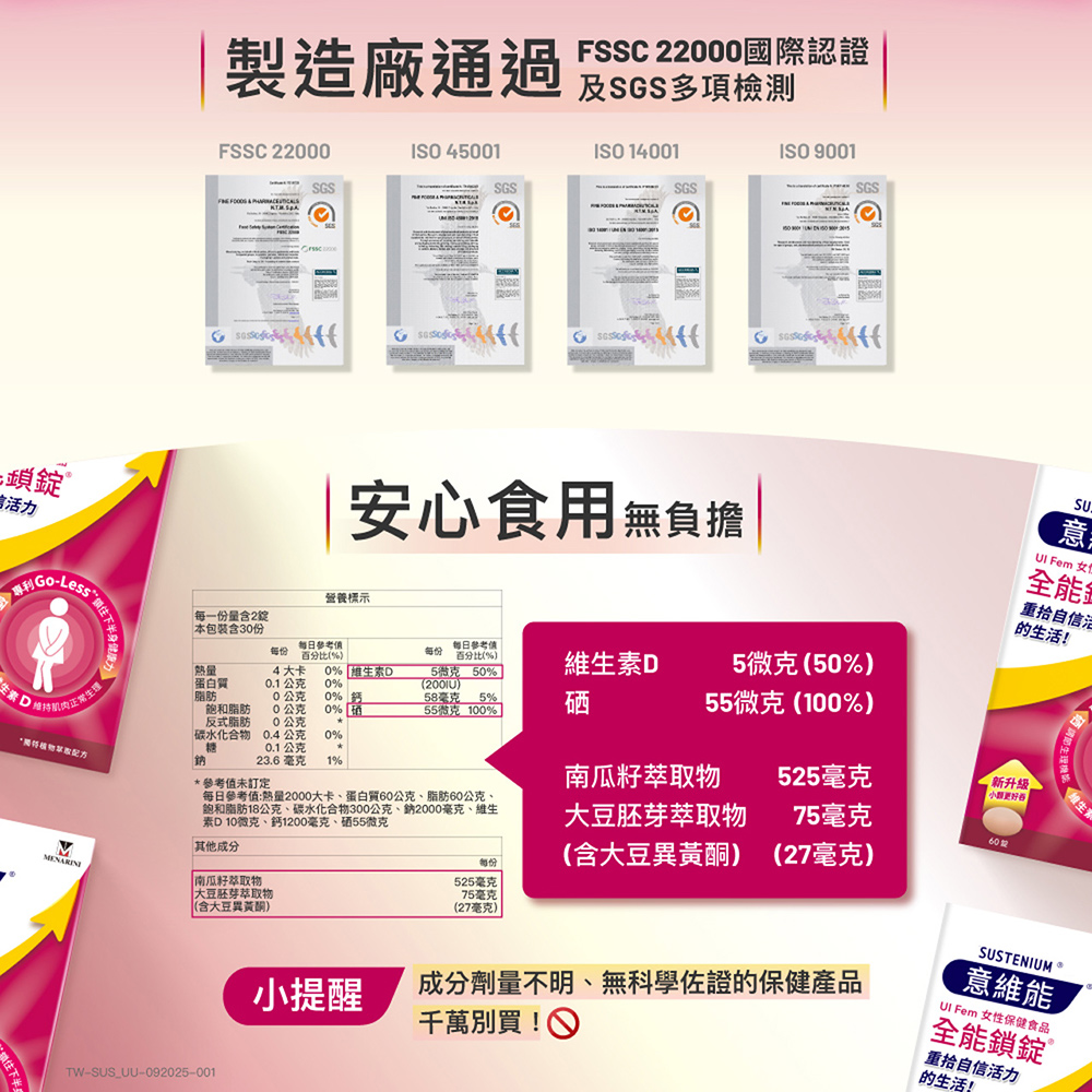 【Sustenium 意維能】全能鎖錠體驗包(14錠/包-Go-Less/南瓜籽/大豆胚芽萃取)