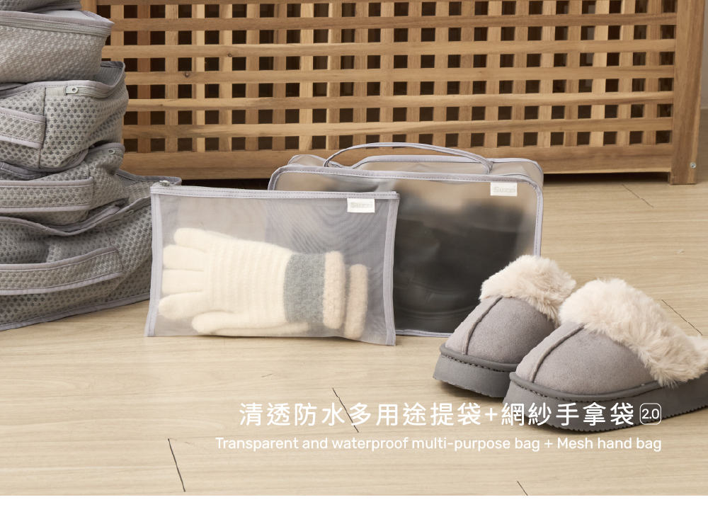 Suzzi 清透防水多用途提袋 X 網紗袋組合-倫敦灰