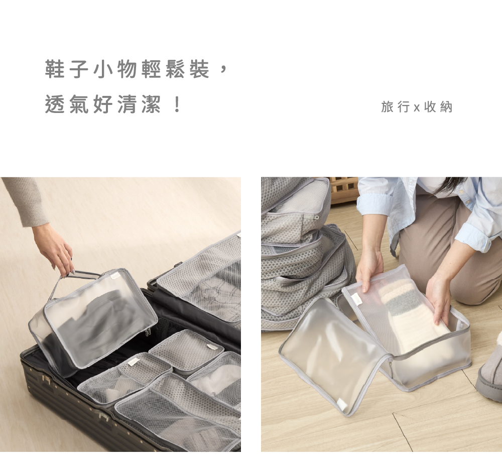 • 防水防潮,衣物收納清爽• 乾濕分離,鞋襪收納好搭配• 簡約雙袋,美型又實用