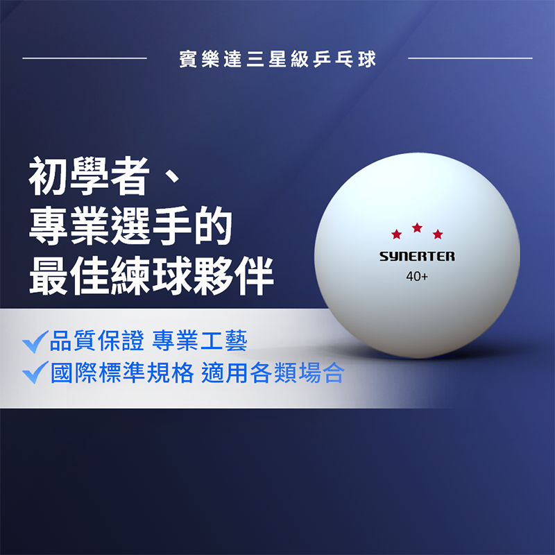 賓樂達 SYNERTER 三星級 40+ 桌球專為專業比賽與發球機訓練打造,無論是選手訓練、教學課程,還是日常休閒,都能給你最穩定的擊球體驗!