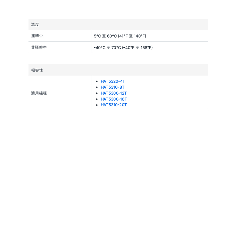 運轉中5°C 至 60°C (41°F 至 140°F) (無冷凝)