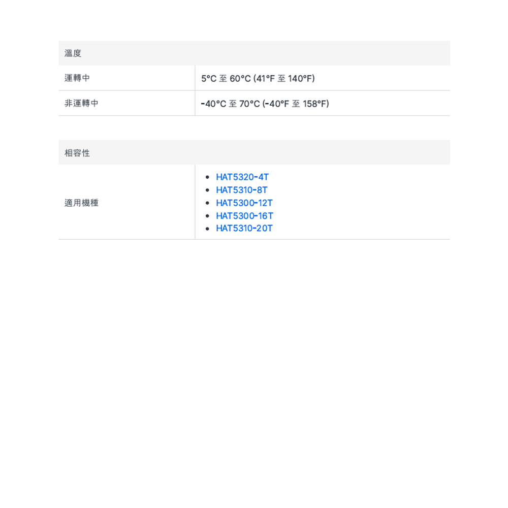 運轉中 5°C 至 60°C (41°F 至 140°F) (無冷凝)