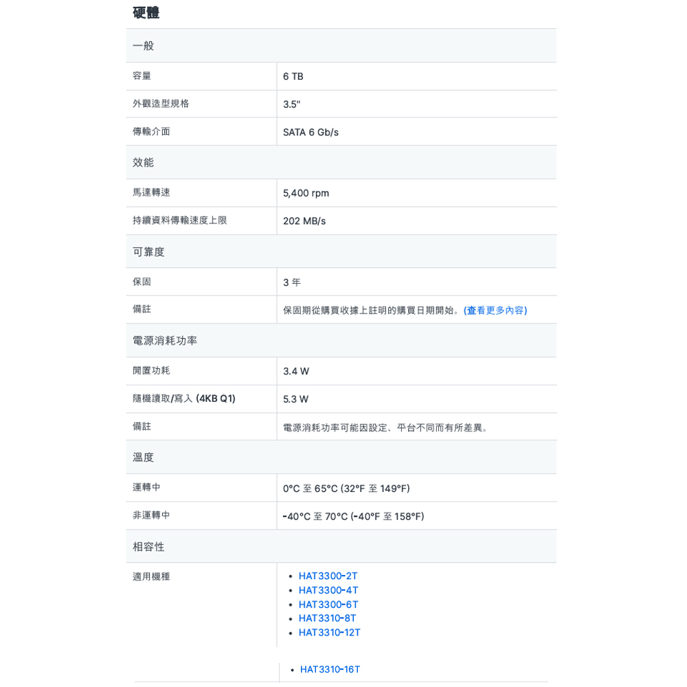 昌運監視器 Synology群暉 HAT3300-6T 6TB 3.5吋企業級硬碟 SATA HDD