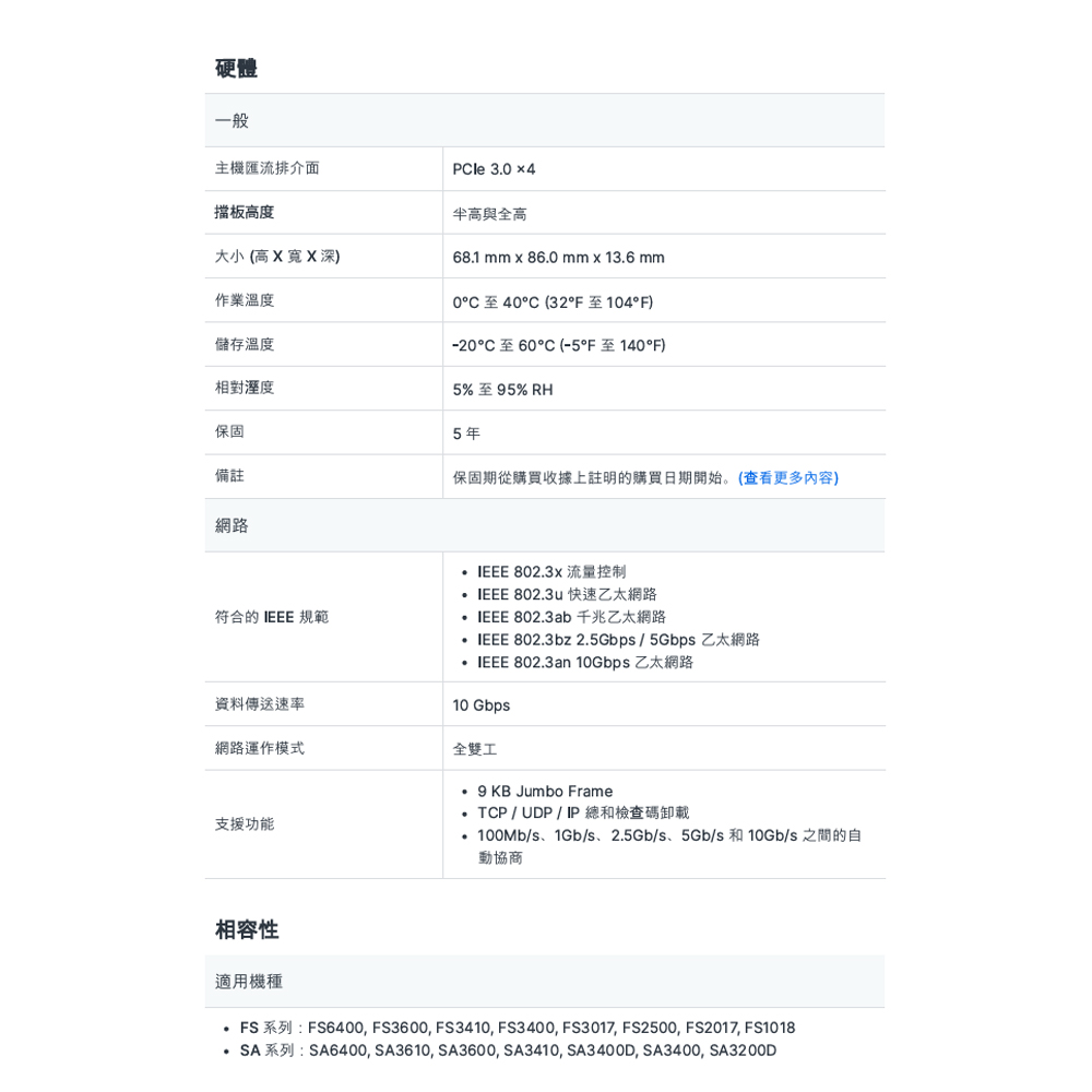 適用於 Synology 伺服器的高速 10GBASE-T/NBASE-T 擴充卡