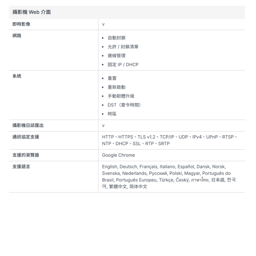 內建人數與車輛計數、煙霧偵測、入侵偵測、Instant Search 及 Auto Tracking