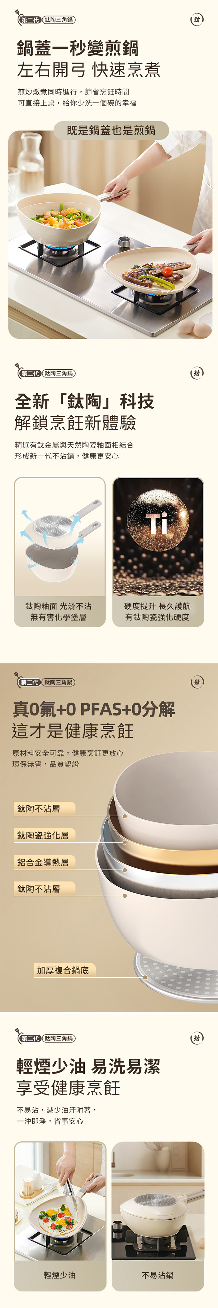 表面處理:鈦+陶瓷釉內外雙層不沾層