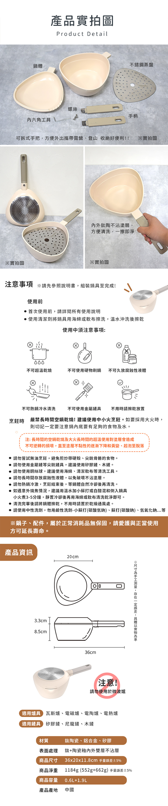 ※請勿大火使用,除了底部加熱區其他部位請勿火燒,避免損毀