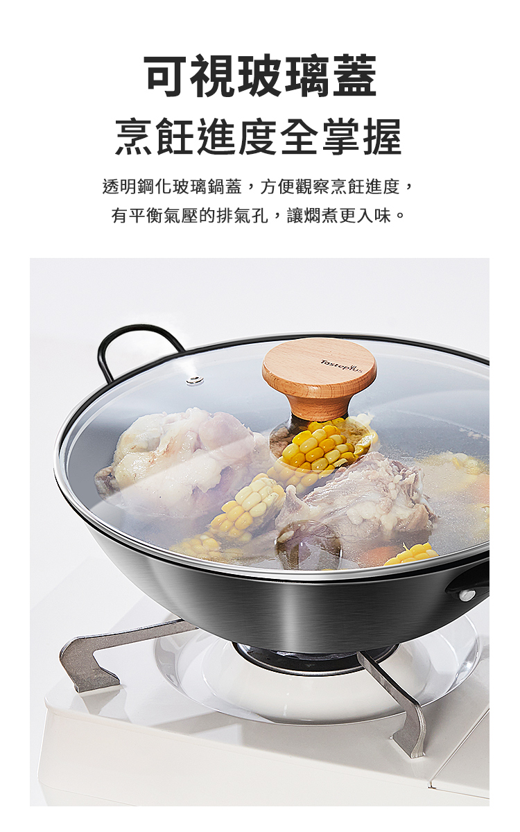 【Taste Plus】悅味元鐵 窒化鐵 無塗層 中式中華炒鍋 輕量化鐵鍋 32cm IH全對應設計(贈玻璃鍋蓋)