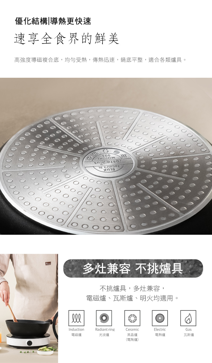●適用於所有烹煮爐具,全適用對應設計