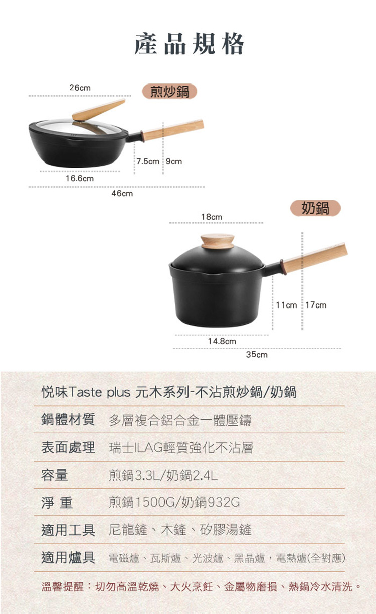 元木系列二件組(煎炒鍋26cm+奶鍋18cm)