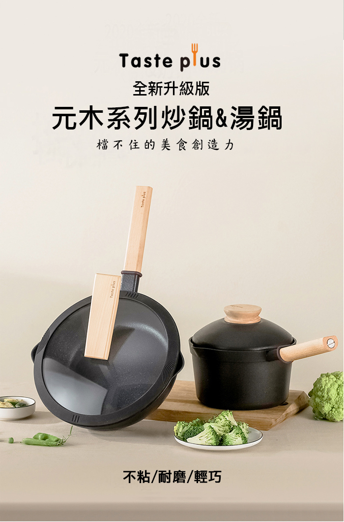 【Taste Plus】悅味元木 鑽石塗層不沾鍋 26cm煎鍋+18cm奶鍋 兩件組 IH全對應設計(贈原廠鍋蓋+木鏟)