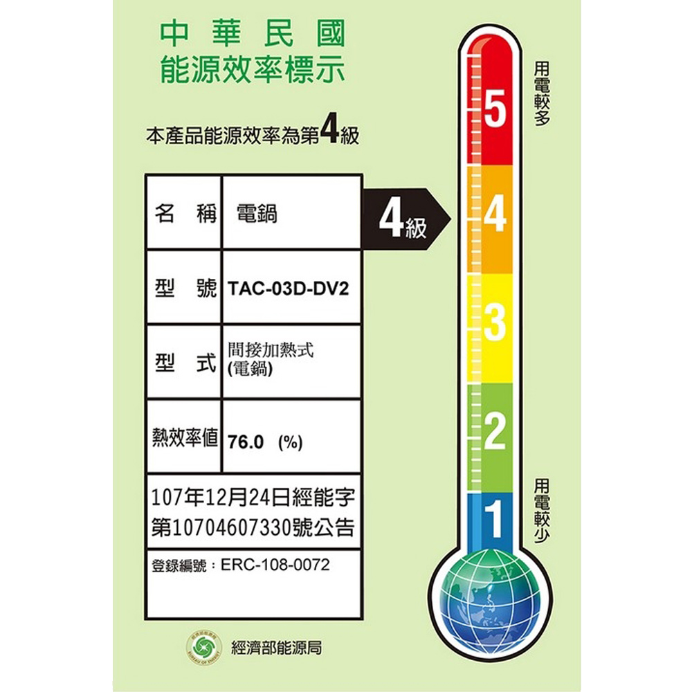 TATUNG大同3人份異電壓220V不鏽鋼電鍋(僅國外適用)TAC-03D-DV2BI