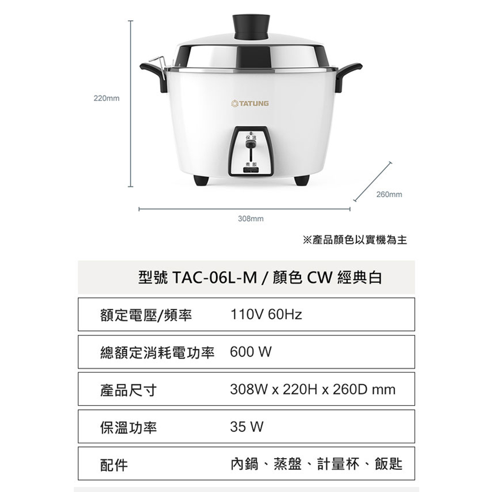TATUNG 大同 6人份不鏽鋼配件電鍋 TAC-06L-MCW
