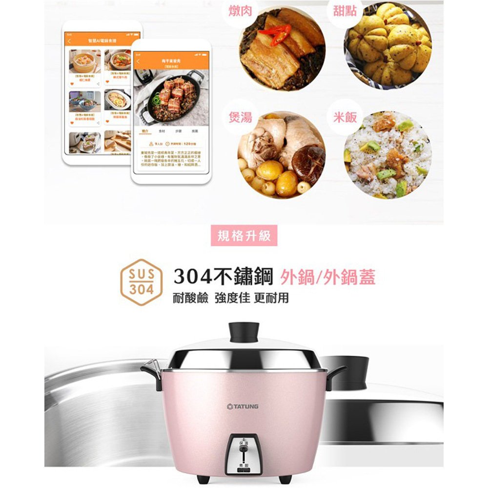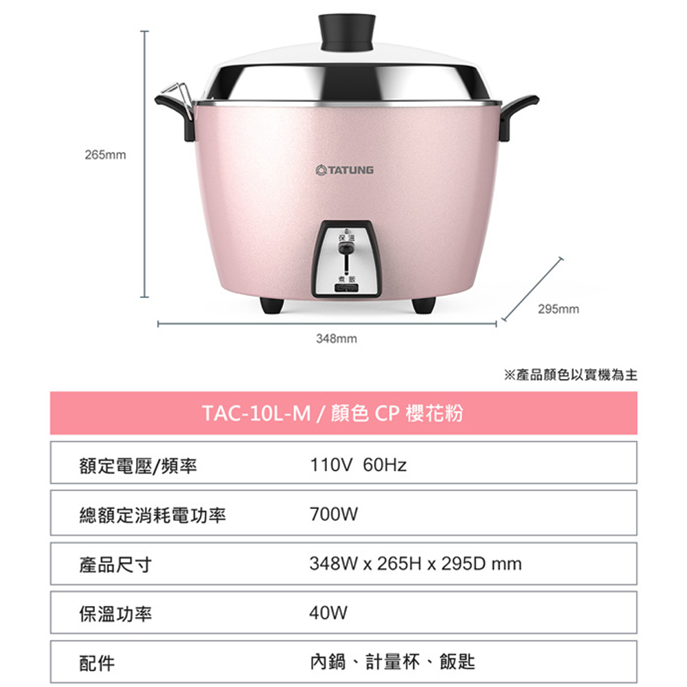 TATUNG 大同 10人份不鏽鋼電鍋-櫻花粉(簡配) TAC-10L-MCP