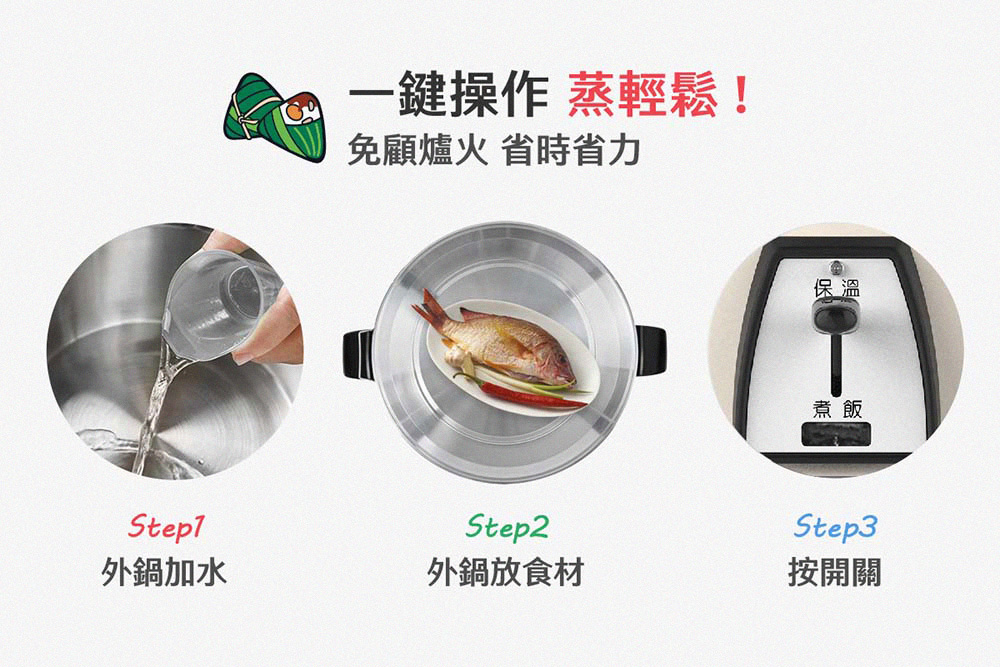 ※多元料理,煮飯/粥、蒸、滷、燉多用途