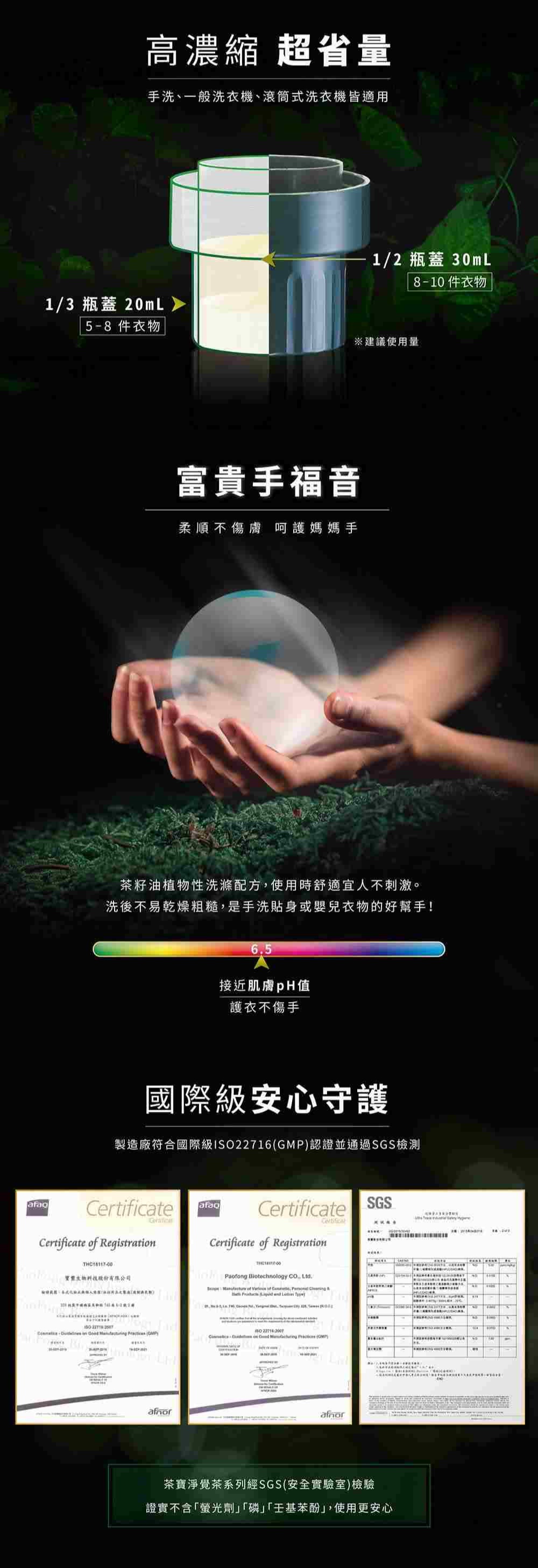●採用台灣珍貴茶籽精華的潔淨配方,茶籽皂素提升洗淨力,自然分解汙垢,不擔心殘留衣物,好洗又環保。