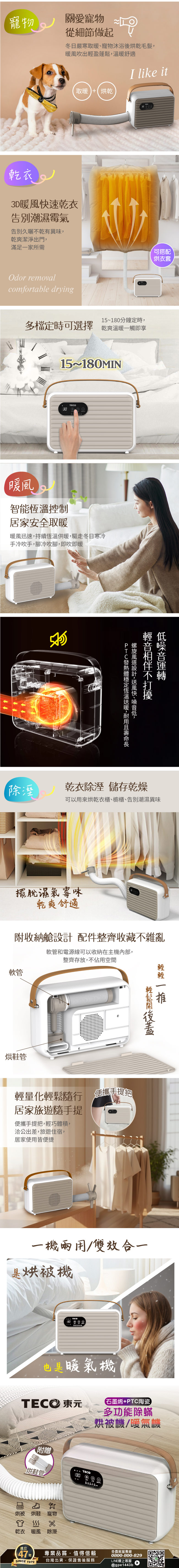 採用石墨烯+PTC陶瓷雙超導體烘被/暖氣/烘鞋/乾衣 多功能6種預設功能,一鍵全自動暖被乾衣3D立體伸縮軟管深入被套全面烘透附贈烘鞋管,高筒靴也能輕鬆烘乾寵物毛小孩,吹乾毛髮,烘乾取暖
