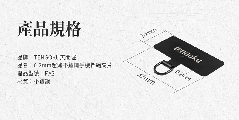 【tengoku天閤堀】0.2mm超薄不鏽鋼手機掛繩夾片