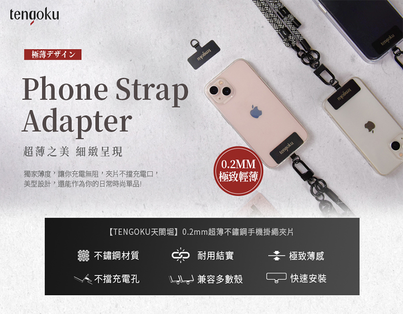 【tengoku天閤堀】0.2mm超薄不鏽鋼手機掛繩夾片