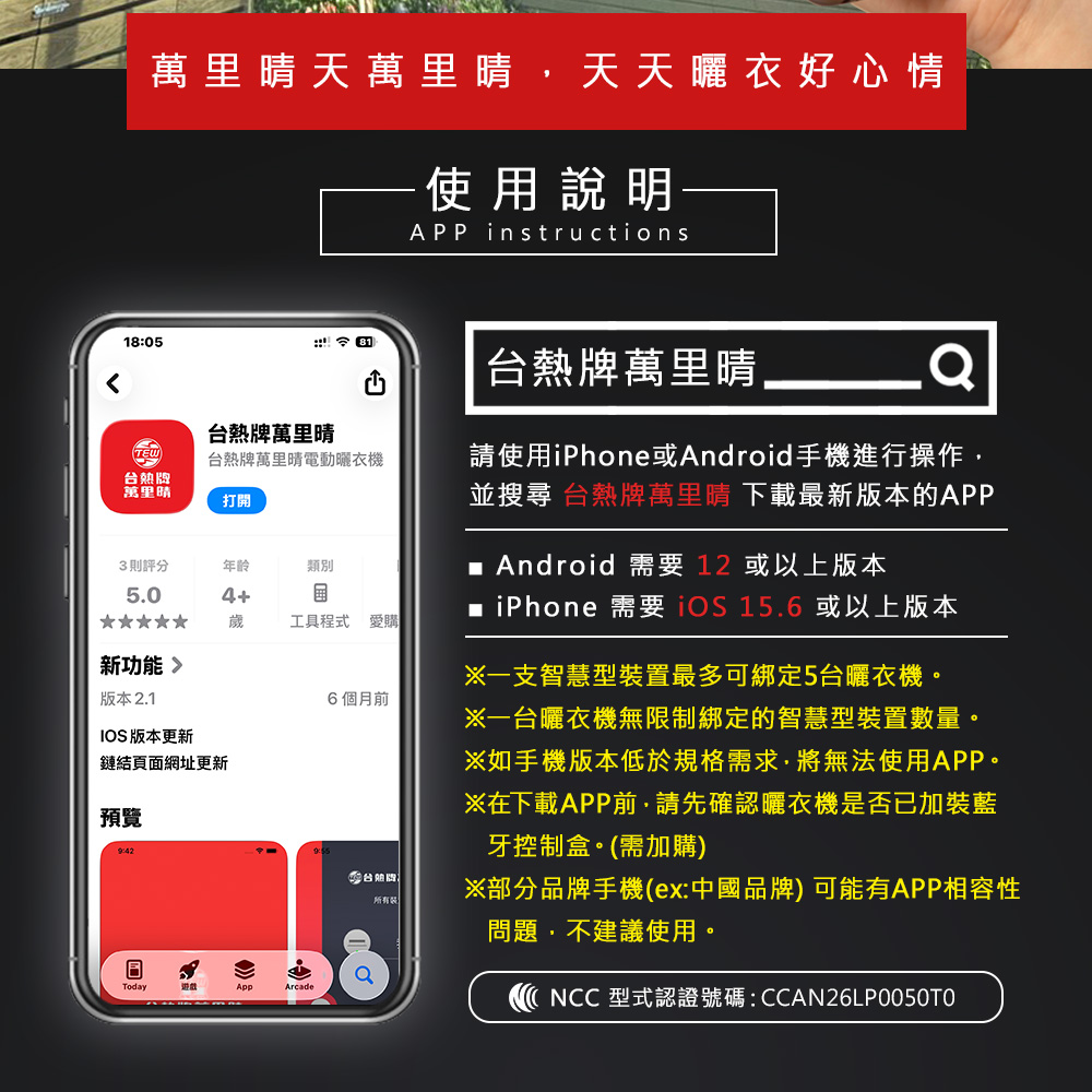 【TEW台熱牌】萬里晴 藍芽APP/電動遙控升降曬衣機(TCM-210-SS11+)(頂級尊爵款)(附基本安裝)
