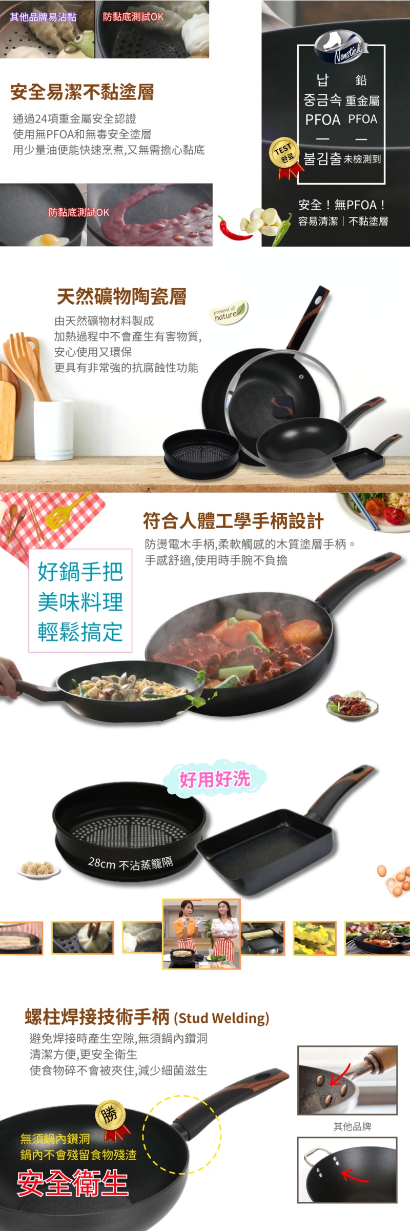 - 鍋底加厚處理,使不黏塗層更耐用,壽命更長