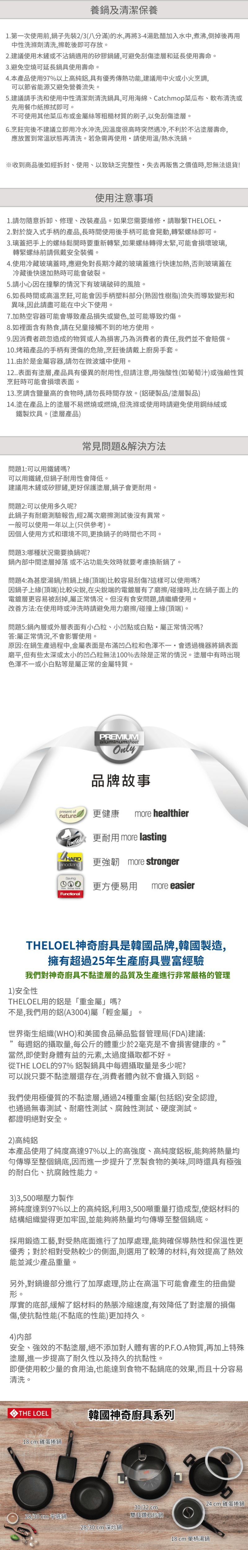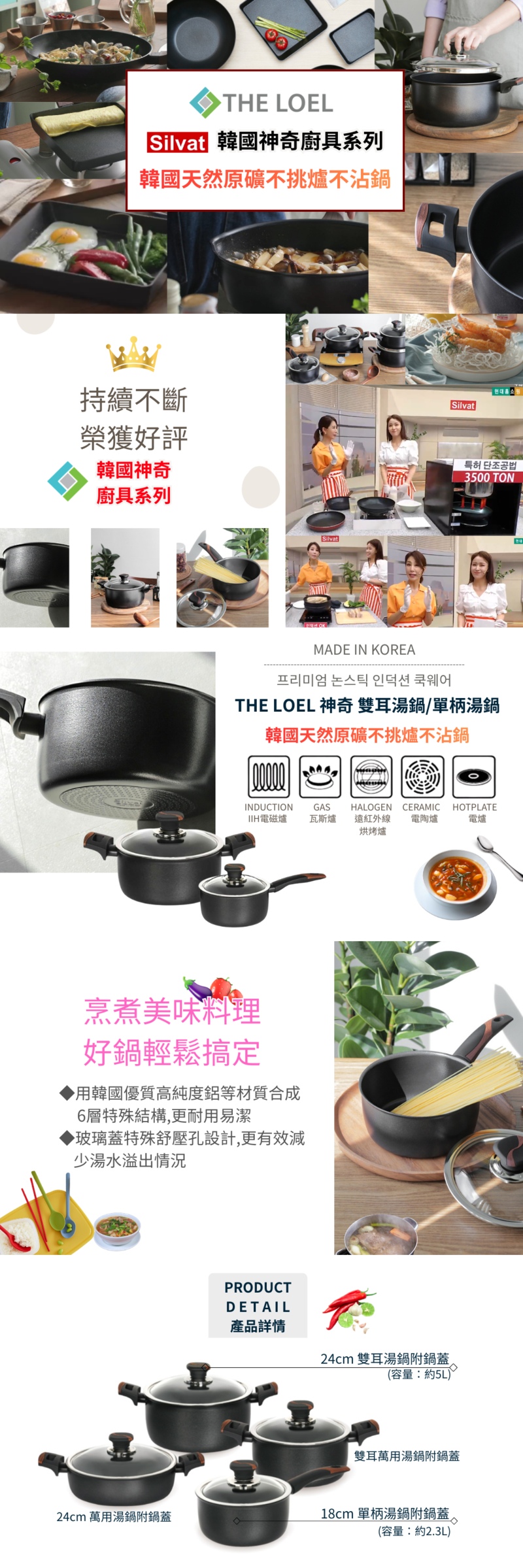 產品名稱:THE LOEL 韓國天然原礦不挑爐不沾鍋 24cm耐磨雙耳湯鍋(附鍋蓋)