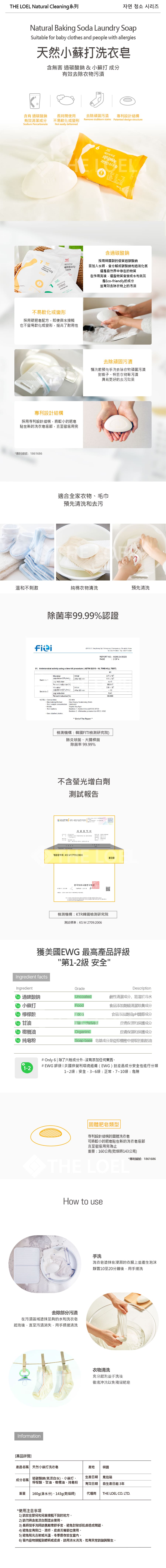【THE LOEL】抗菌天然小蘇打洗衣皂 160g x 1入&3入