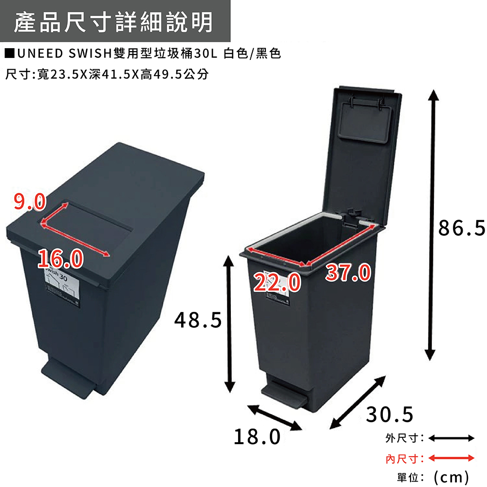 【this-this】日本TONBO|UNEED系列推蓋踩踏雙用型垃圾桶-純色系30L