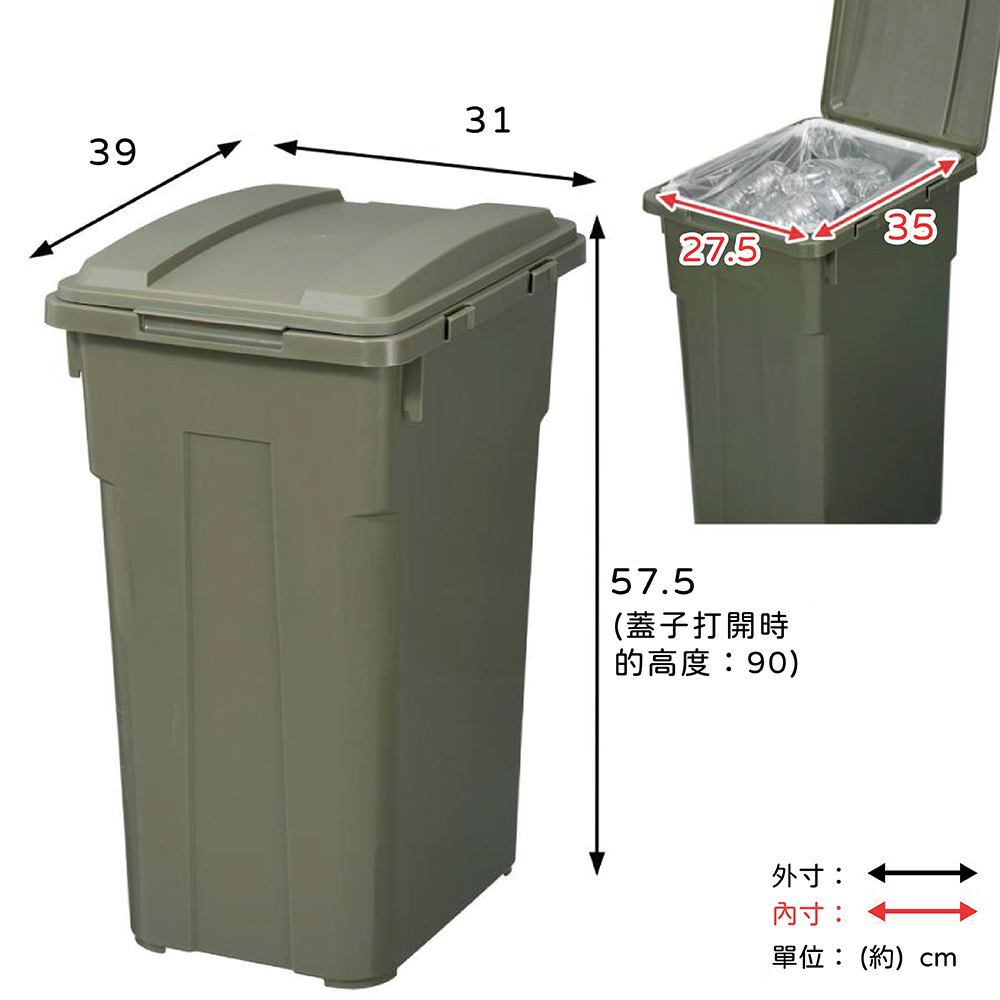 尺寸:約寬31 x 深39 x 高57.5(cm)材質:聚丙烯容量:45公升重量:1.5公斤產地:日本