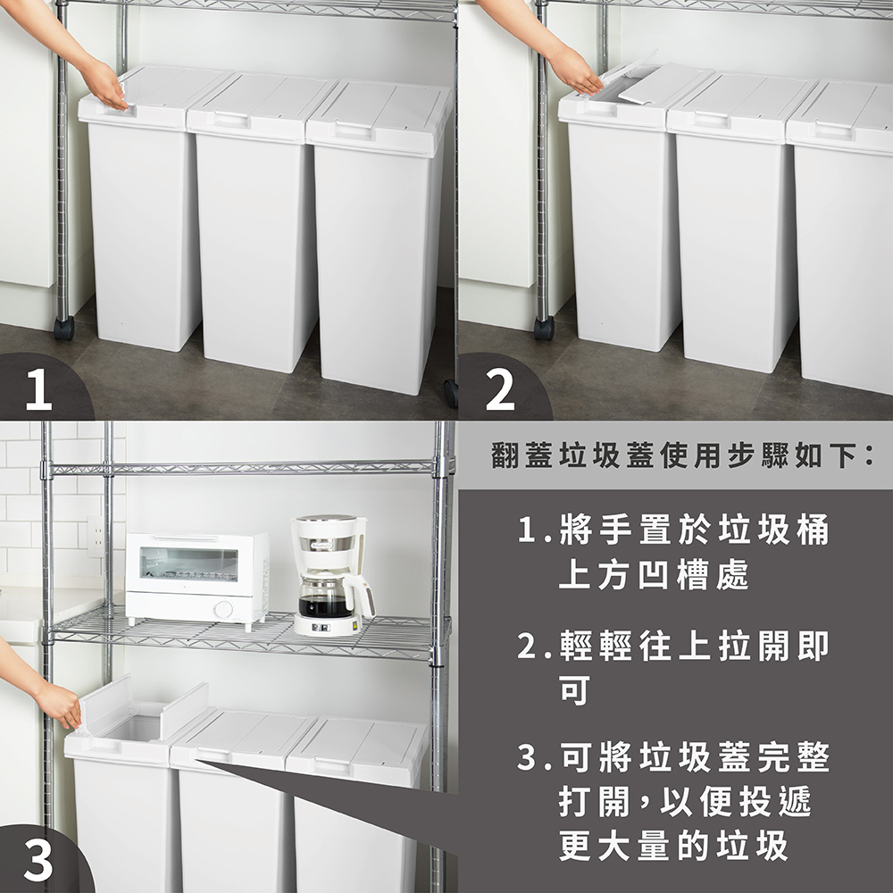 【this-this】日本TONBO|UNEED系列翻蓋對開垃圾桶45L