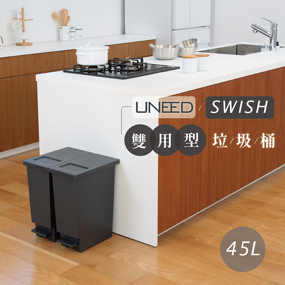 【this-this】日本TONBO|UNEED系列推蓋踩踏雙用型垃圾桶-純色系45L