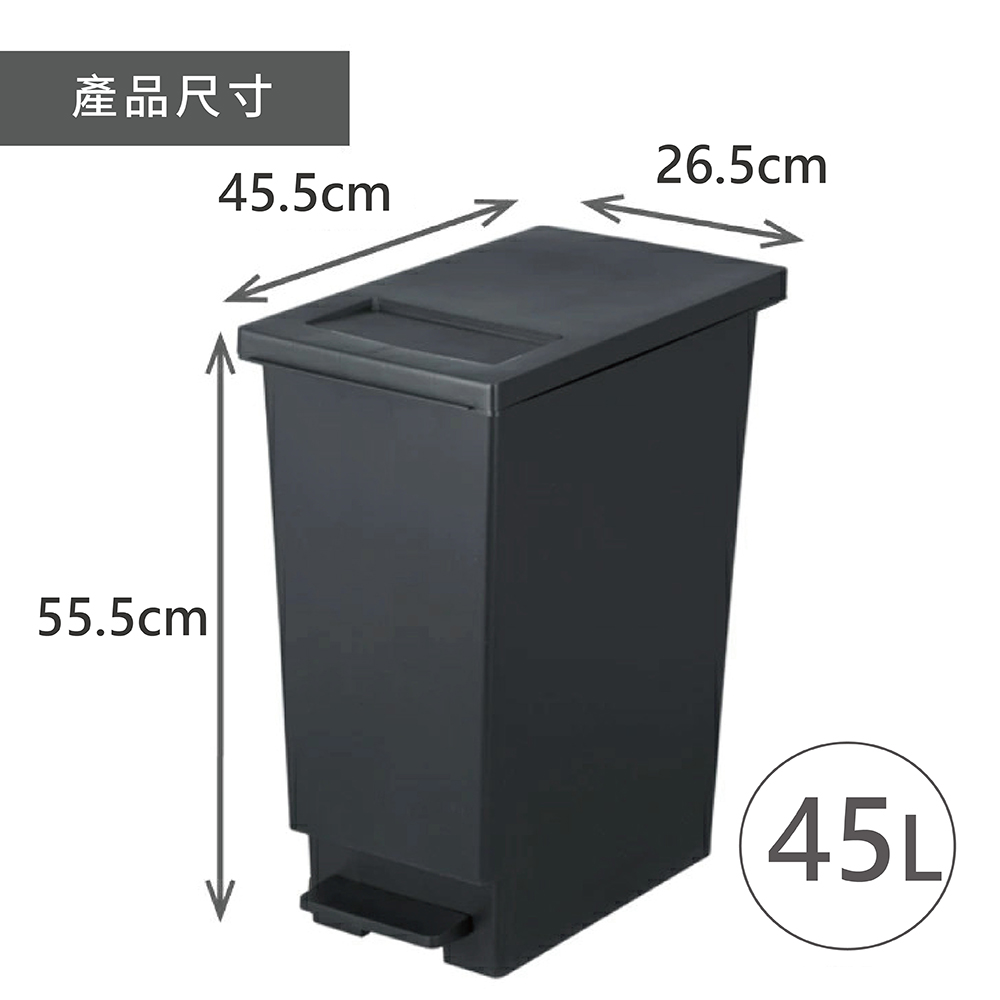 尺寸:寬26.5x深45.5x高55.5cm(打開蓋子後高度為96.5公分)材質:聚丙烯容量:約 45公升生產國:日本