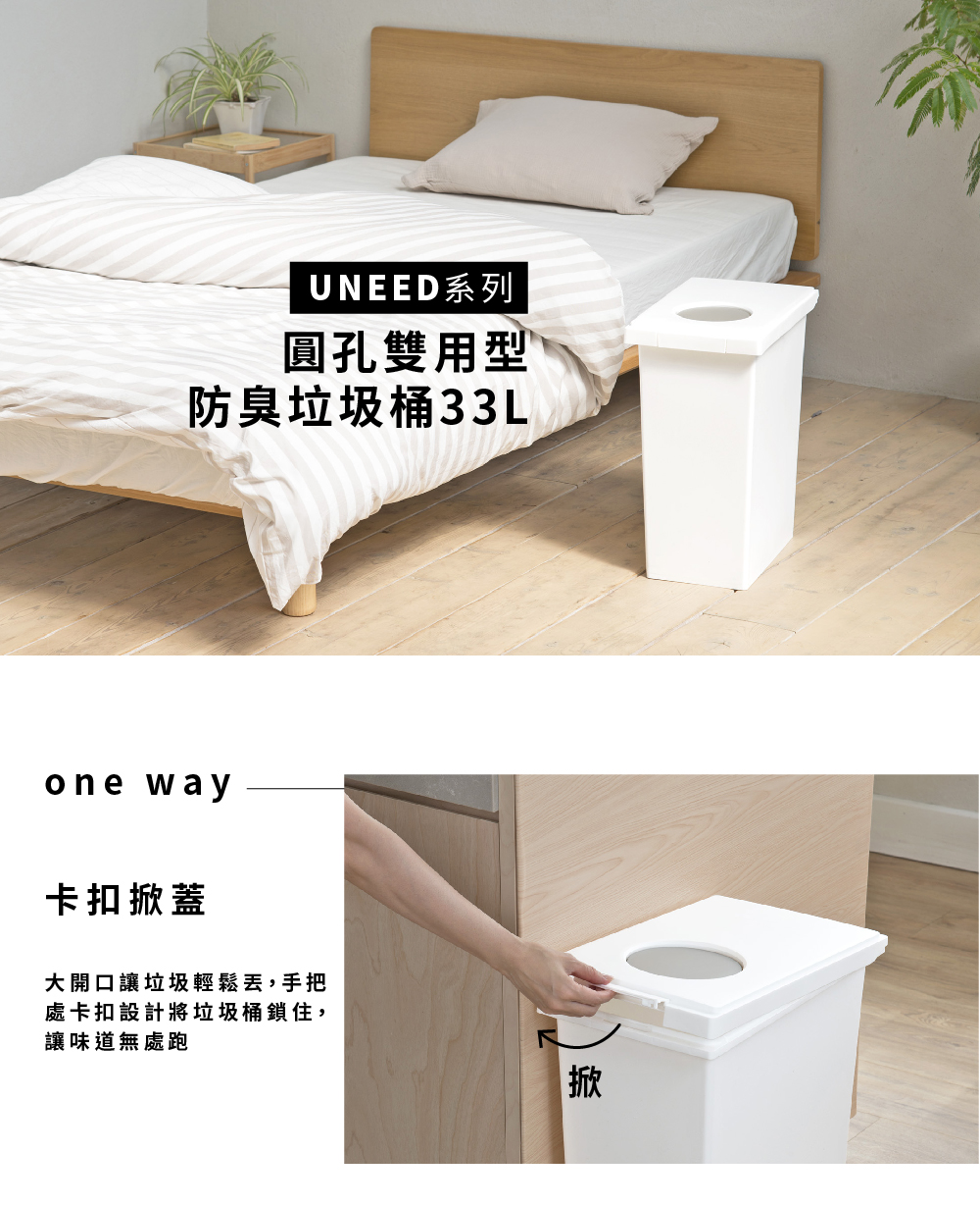 【this-this】日本TONBO|UNEED系列圓孔雙用型防臭垃圾桶 33L
