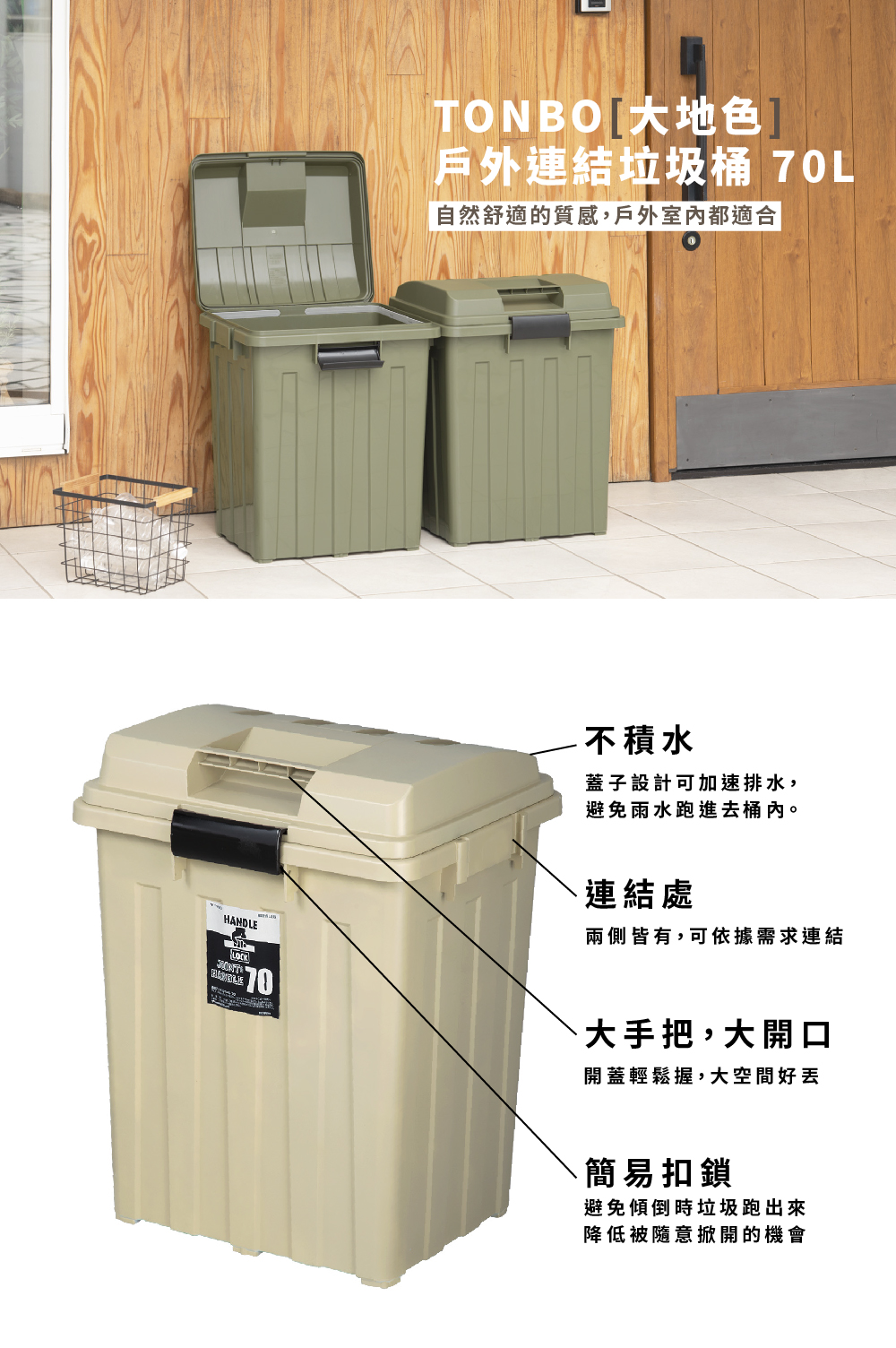【this-this】日本TONBO|戶外連結式大型垃圾桶-大地色 70L