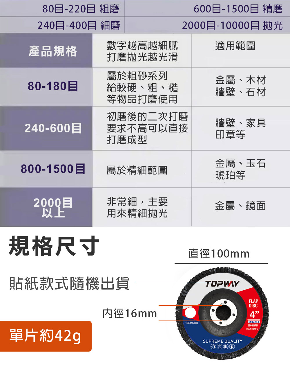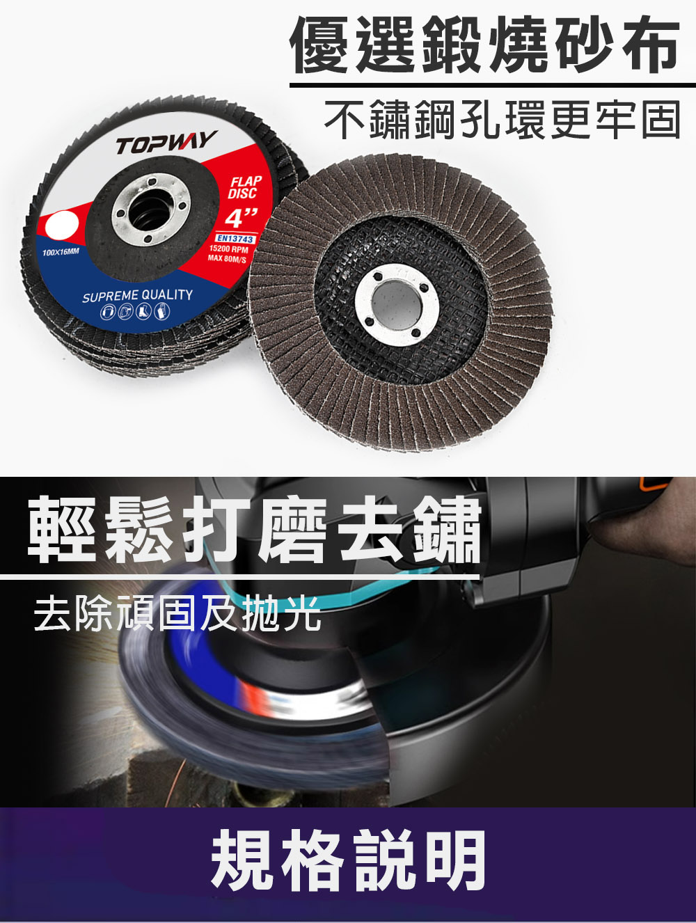 TOPWAY 4吋平面砂布輪 砂輪片(乾磨) 百頁輪 拋光輪 百葉輪 72頁 砂布輪 可彎曲砂輪 高效拋光 耐磨