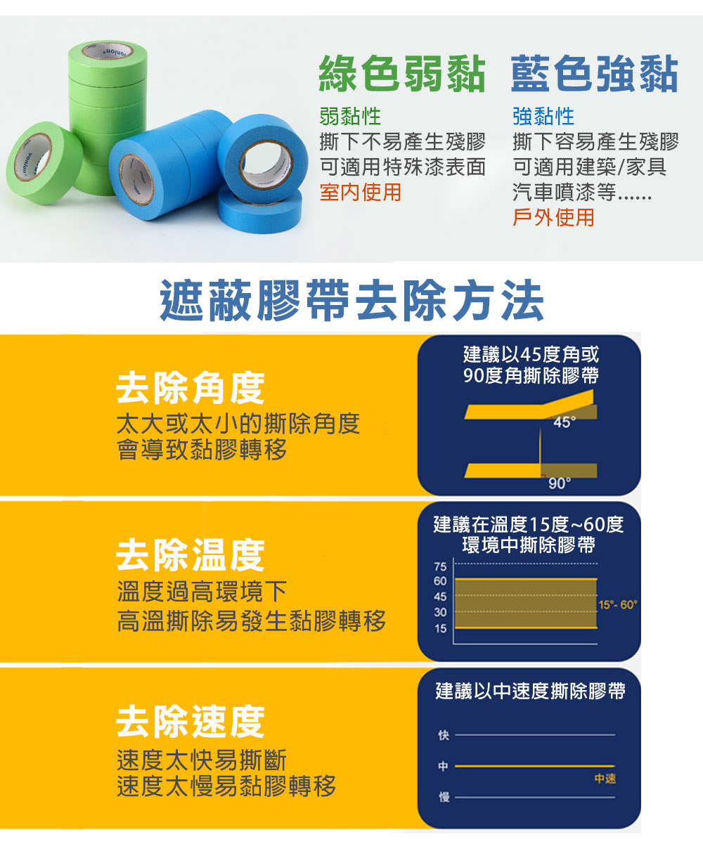 遮蔽膠帶和紙膠帶|強黏款 / 弱黏款