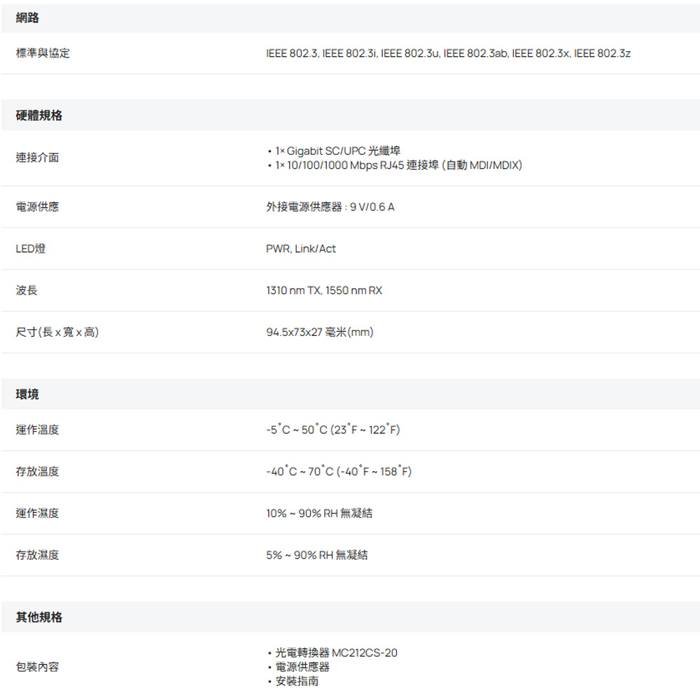 TP-LINK MC212CS-20 Omada Gigabit WDM 光電轉換器(單模單芯) 昌運監視器