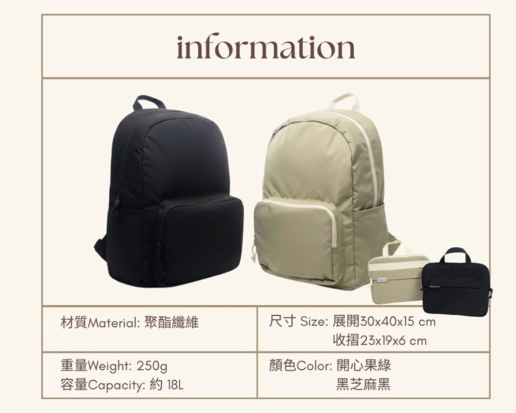 顏色: 開心果綠、黑芝麻黑展開尺寸:30 x 40 x 15 cm