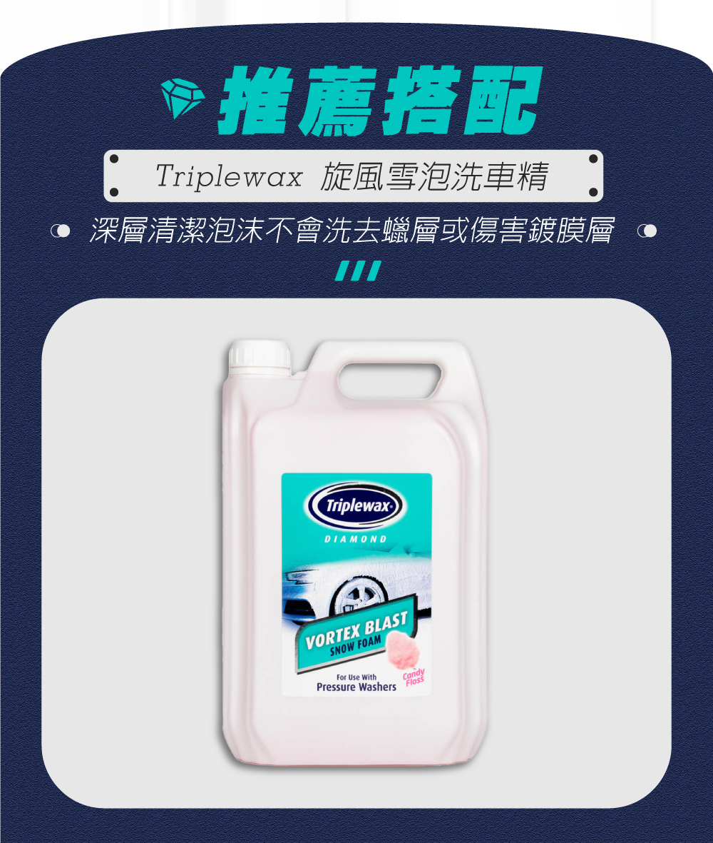 觀看影片了解如何操作>漆面保養的秘密武器,噴噴擦擦,快速完成打蠟保養規格說明‧ 品名:Triplewax Ceramic Wax 陶瓷鍍膜蠟‧ 容量:500ml‧ 製造商:英國 Tetrosyl 公司‧ 產地:英國製造注意事項‧ 不適用於前擋風玻璃、消光漆面和包膜。‧ 不要在高溫環境或陽光直射下使用。‧ 在任何時候都需直立存放,以防止外溢。‧ 請避免讓孩童接觸,若不慎觸及眼睛請以大量清水沖洗並就醫檢查。