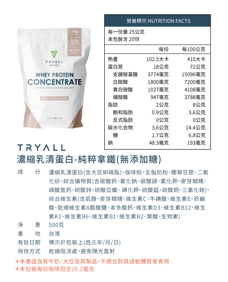 [饌元]Tryall 濃縮乳清蛋白粉500g 多款口味