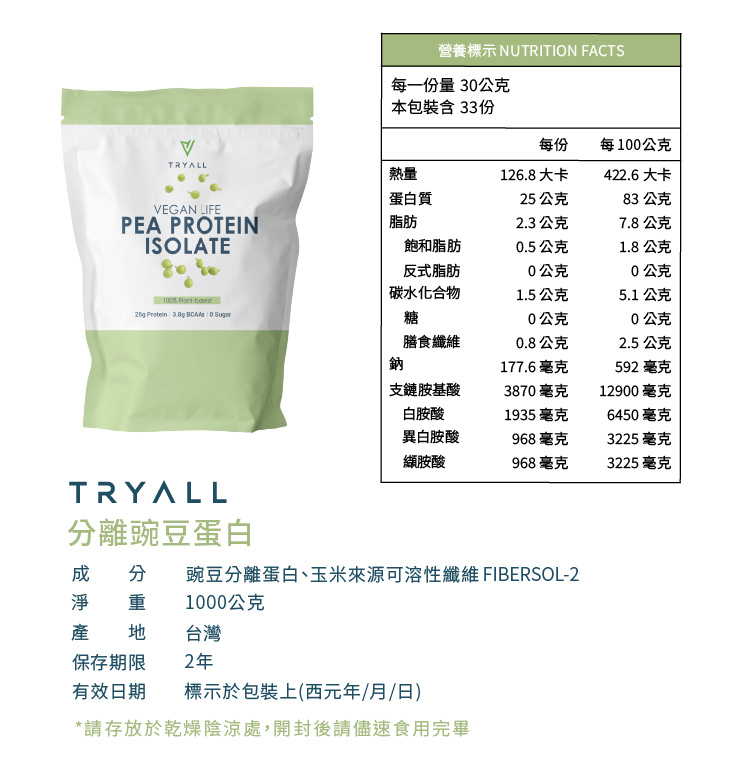 [饌元]Tryall分離豌豆蛋白 (1kg)