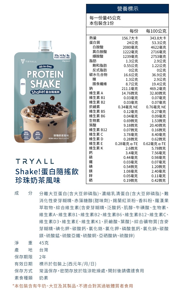 [饌元]Tryall Shake 隨搖飲 5入-珍珠奶茶風味