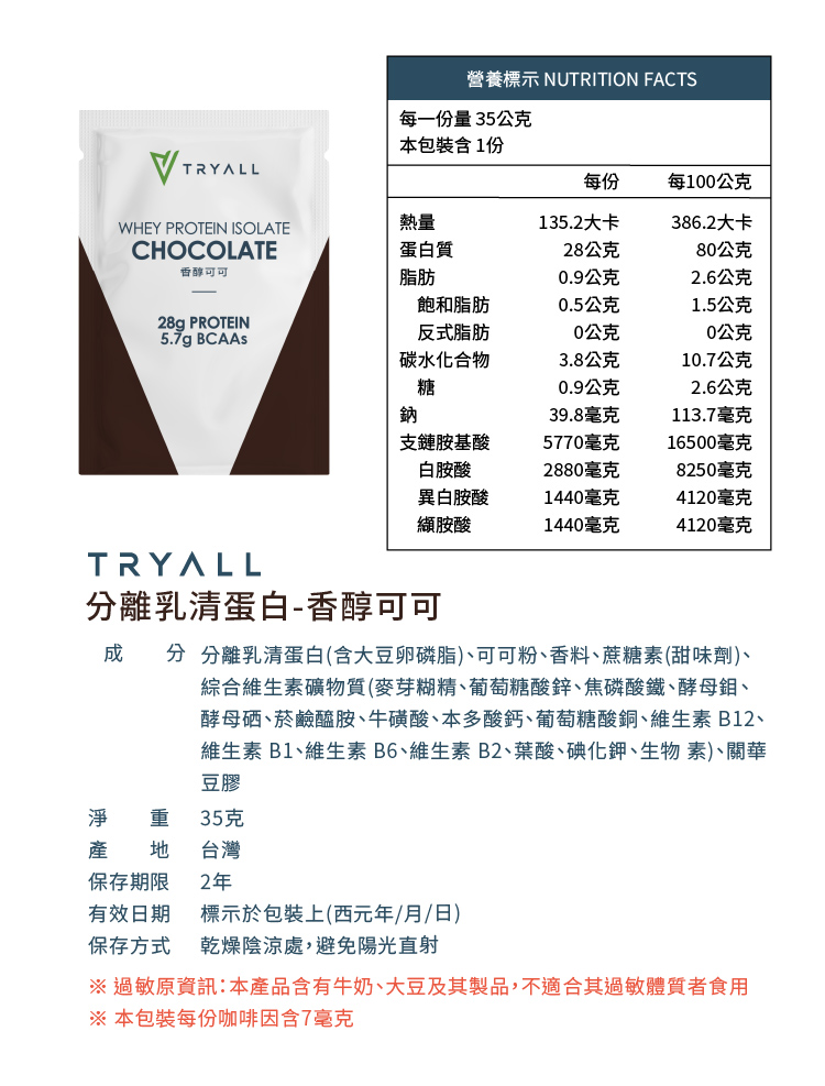 [饌元]Tryall 分離乳清蛋白10入-香醇可可35g