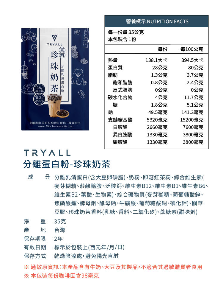 [饌元]Tryall 分離乳清蛋白10入-珍珠奶茶35g