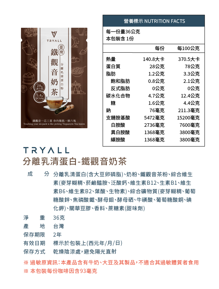 [饌元]Tryall 分離乳清蛋白10入-鐵觀音奶茶36g