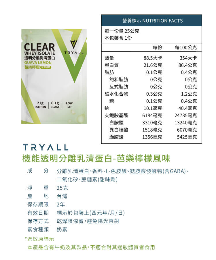 [饌元]Tryall 機能透明分離乳清10入-芭樂檸檬25g