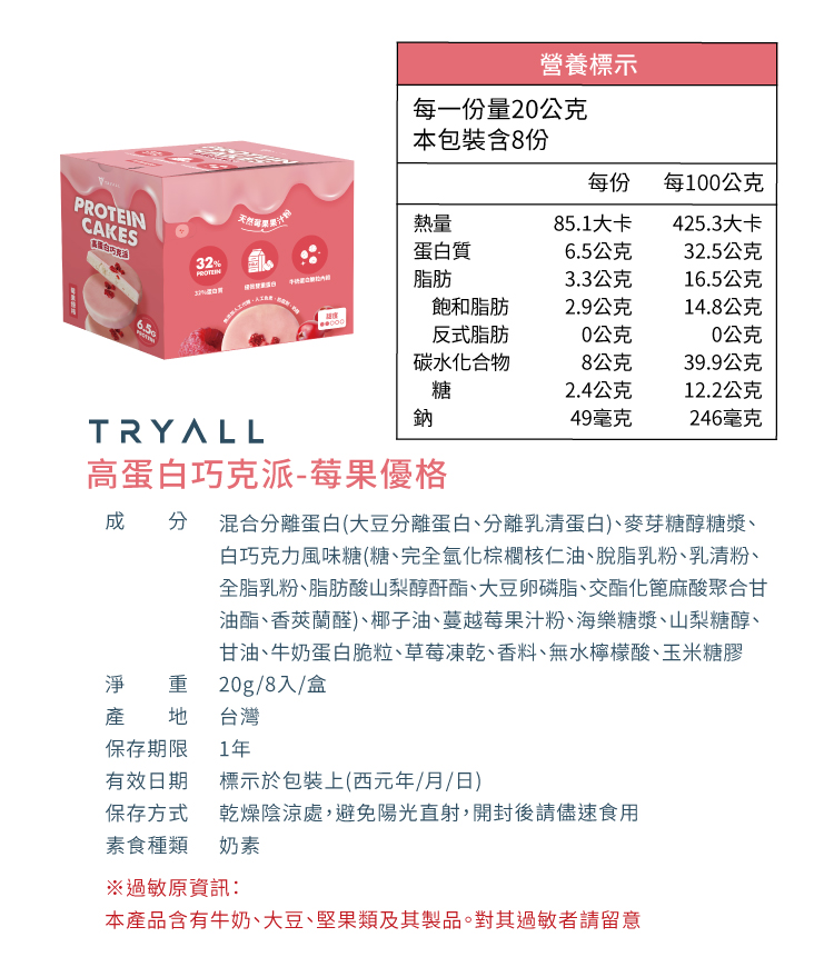 [饌元]Tryall 高蛋白巧克派-莓果優格