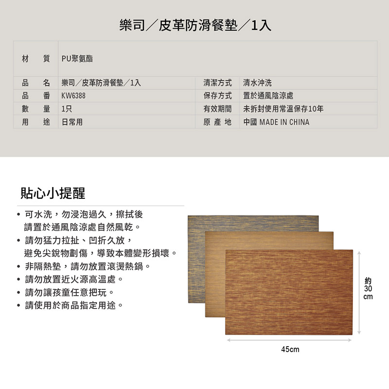 樂司皮革防滑餐墊1入(顏色隨機出貨)