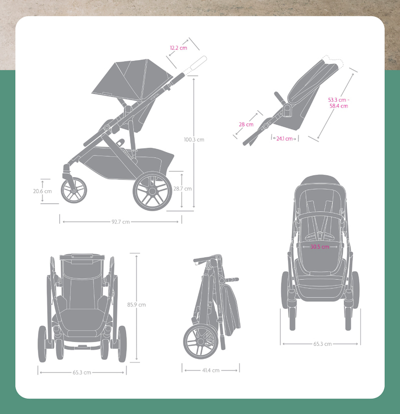全面升級 | 全新體驗●全天候舒適座椅後背採用透氣式網布設計,同時配有可拆卸椅墊,能對應不同溫度及氣候更換。●避震強化再提升大尺寸輪胎,搭配FlexRide懸吊式避震,回彈不觸底。輕鬆乘載1-3個寶寶,面對各種地形不顛簸。並採用單腳煞車系統。●全新設計反光條車輪外框上新增反光條,讓夜晚外出更加安心安全。●五點式安全帶升級磁吸式安全扣,一鍵調節安全帶,輕鬆方便操作。●質感美學設計-鋁鎂合金材質,兼具輕量化與耐用性。手把連接處,高光設計使材質更絲滑。-手把和防撞桿以REACH認證的真皮皮革包覆。-隱藏式鉚釘設計,營造出更為精緻的美學效果。●最高規格認證GREENGUARD金牌認證,給予清新與健康的環境。●One for all 百變模式及功能-頂級車款,最多可擴充至2個座椅及一組輔助踏板。並可搭配睡箱及提籃。-座椅高度較高,出外可直接當兒童餐椅使用。兩組座椅皆可調整前後兩個方向,也能躺平至180度。-超大容量的置物空間,內容物輕鬆方便取放。-可伸展的遮陽罩,具有防潑水功能,及防曬系數超過UPF 50+,可遮擋有害的紫外線。易開啟且透氣的通風窗,可隨時觀看寶寶的狀況。